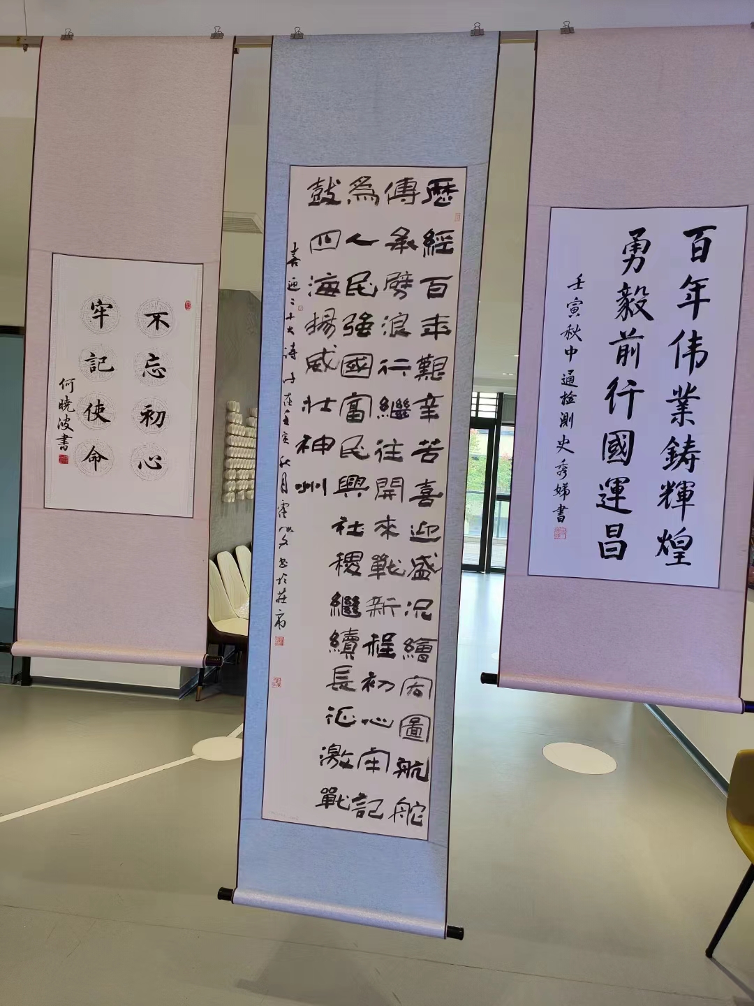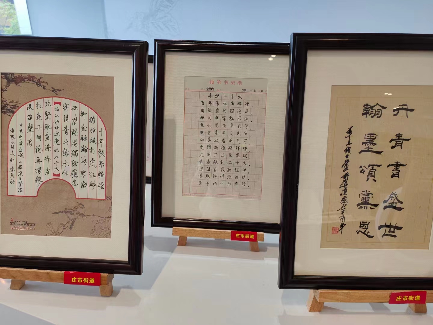 收看完激動(dòng)人心的二十大報(bào)告后,各黨支部負(fù)責(zé)人還參觀了街道組織策劃的各企業(yè)喜迎二十大的書法展覽。這些作品主題鮮明、內(nèi)容豐富、取材廣泛,融時(shí)代性、思想性和藝術(shù)性于一體,熱情謳歌了黨的豐功偉績(jī)和祖國(guó)的巨大變化,充分表達(dá)了“堅(jiān)定不移跟黨走”的理想信念,全面展現(xiàn)了“腳踏實(shí)地、砥礪前行”的時(shí)代精神風(fēng)貌。